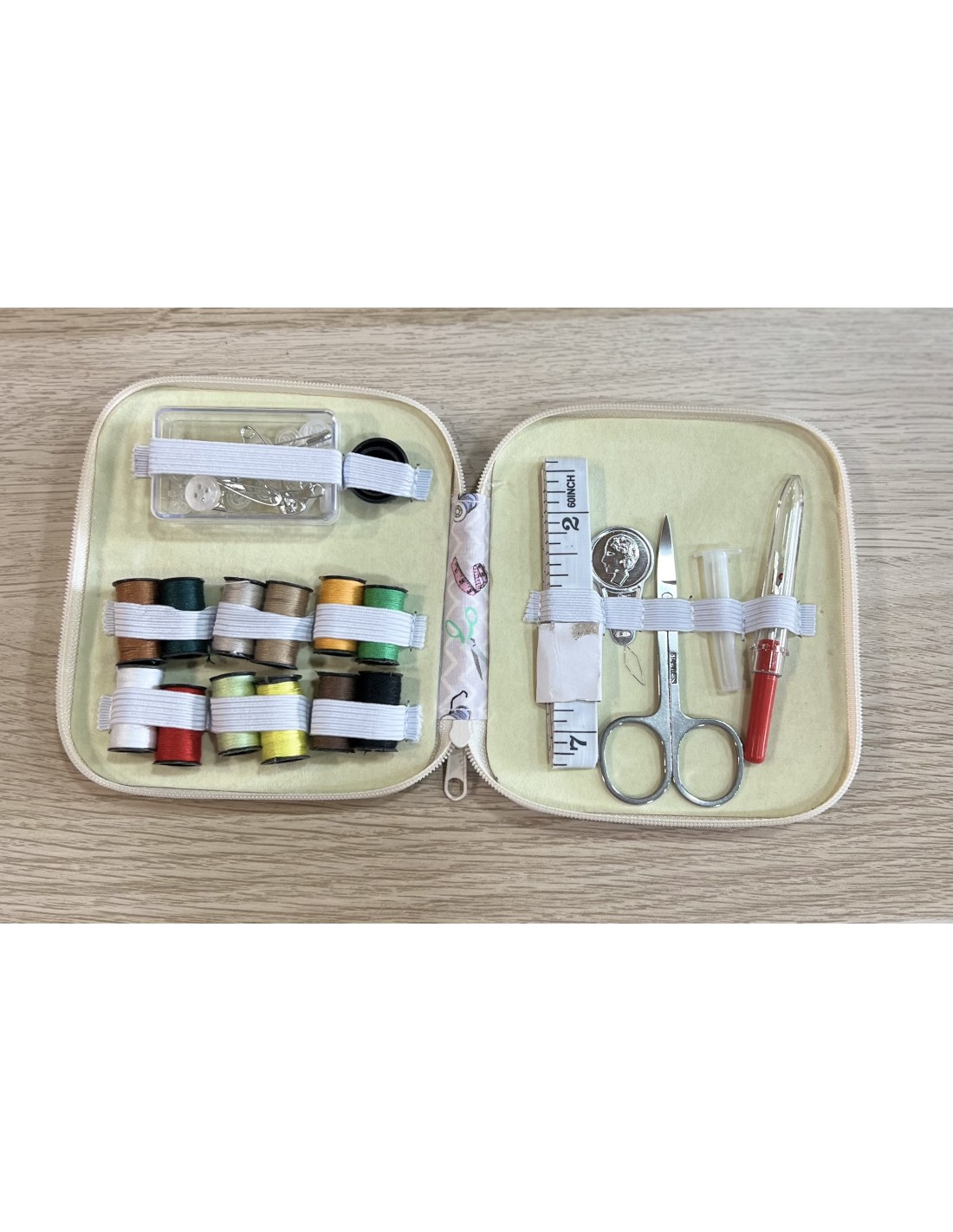Agotado Inicio Costurero de viaje oro rosa 006617 10,00 € Pequeño estuche en oro rosa y tapa transparente, con todos los artículos de costura imprescindibles a la hora de viajar. Ver