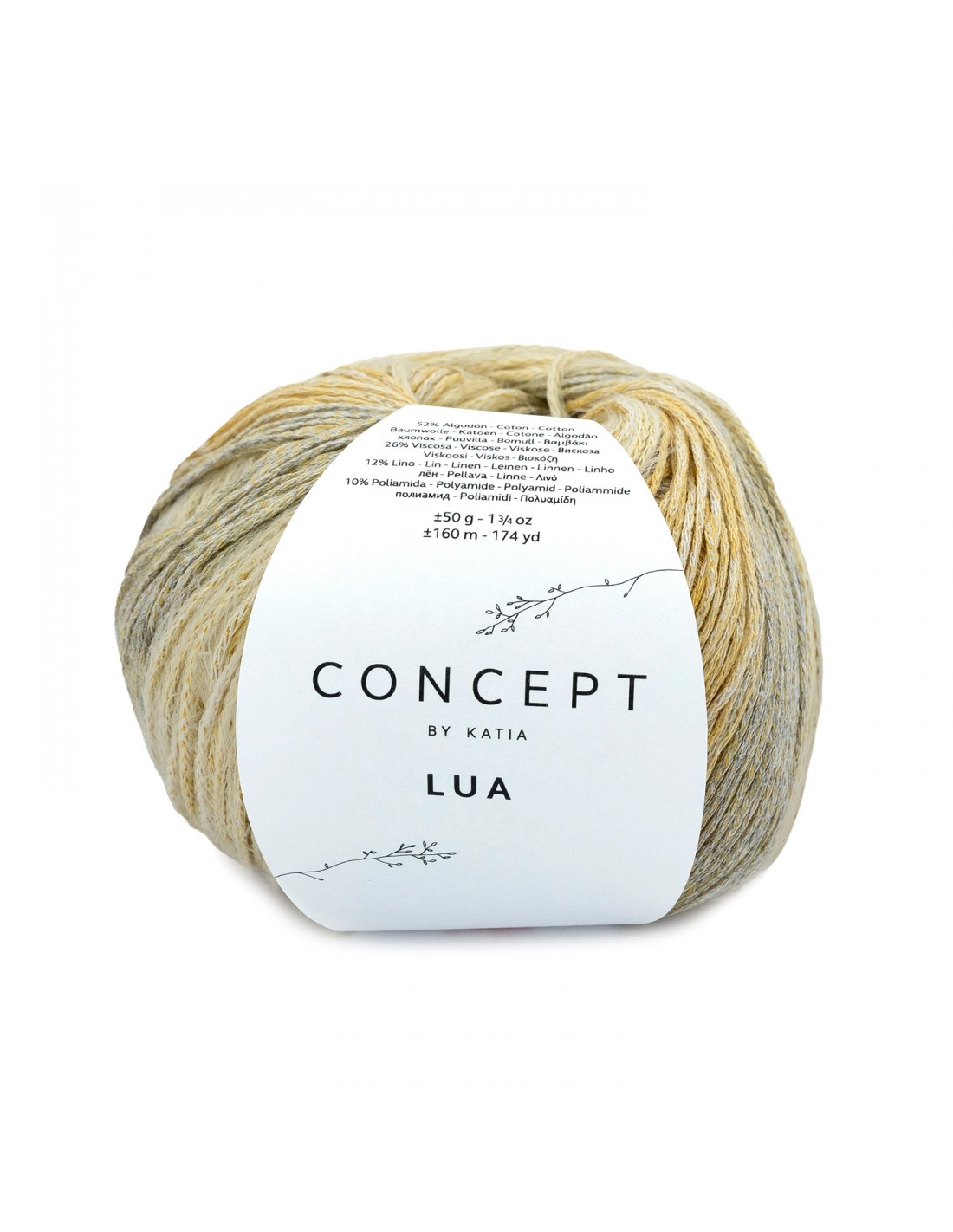 Descubre Lua de Concept by Katia, una sofisticada y sorprendente fantasía de hilos en construcción cinta para tejer a mano. Con su sutil efecto peluche y degradados de color, puedes crear prendas vistosas y coquetas para tu vestuario de entretiempo. El lino aporta su parte más rústica, el algodón y la viscosa frescura e intensidad de color, y la poliamida suavidad. ¡Hazte con este hilo moderno y crea tus propias obras de arte!