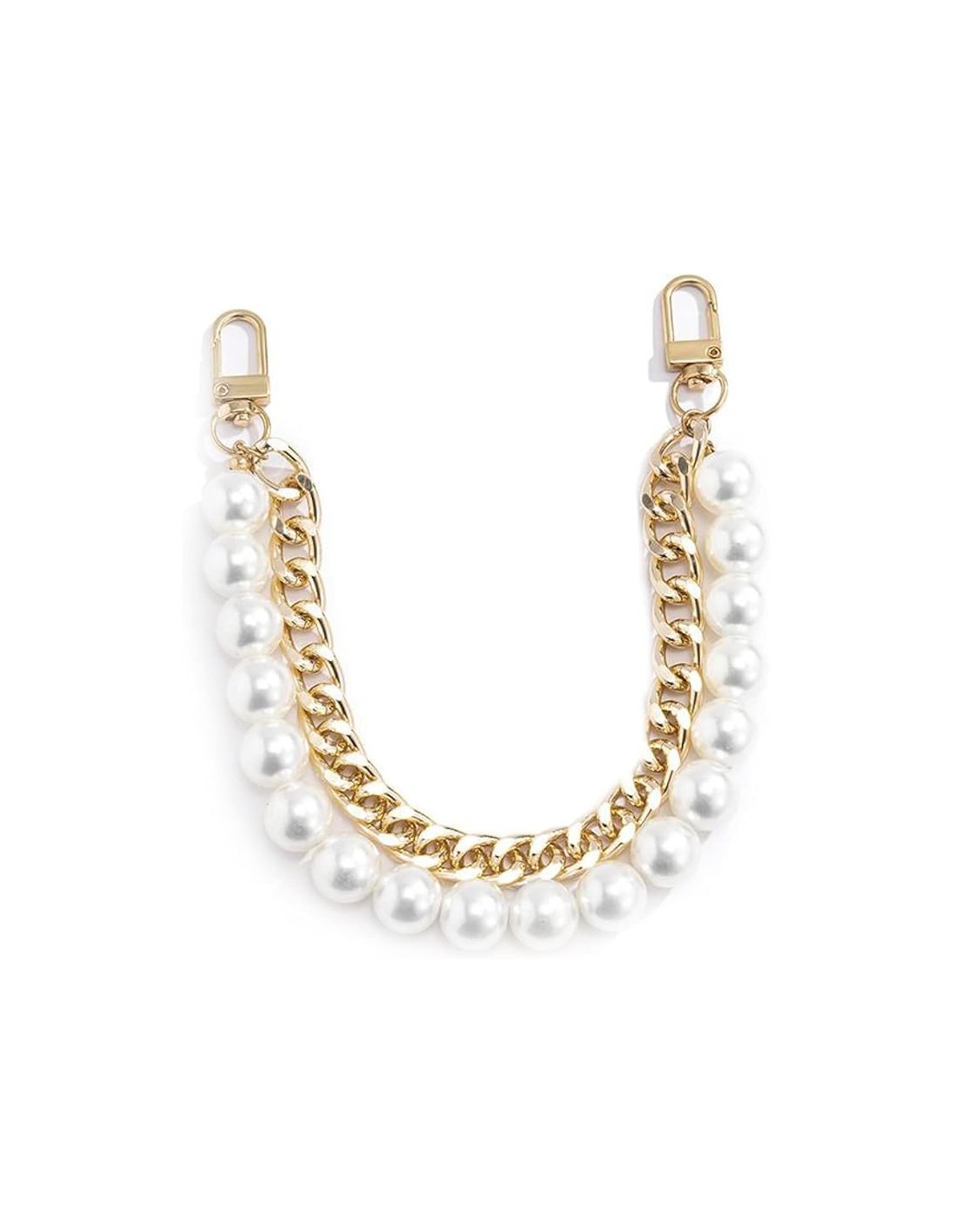 Dos estilos en uno: Perlas clásicas y Cadena moderna Esta asa es el accesorio definitivo para elevar el nivel de cualquier bolso. Su diseño híbrido mezcla la elegancia atemporal de las perlas con la modernidad de la cadena dorada "cubana" o plana. Dependiendo de cómo caiga, tu bolso mostrará un lado más romántico o más moderno.