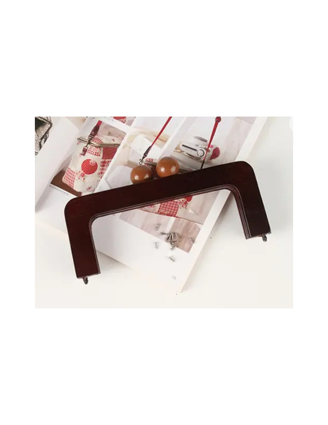 Exclusiva boquilla de madera en color negro con cierre de bolas en tono marrón natural. Con unas medidas de 20 cm de ancho x 11 cm de alto, ofrece un diseño sofisticado y moderno. Ideal para bolsos de mano elegantes, combinando la solidez de la madera con un acabado bicolor único.