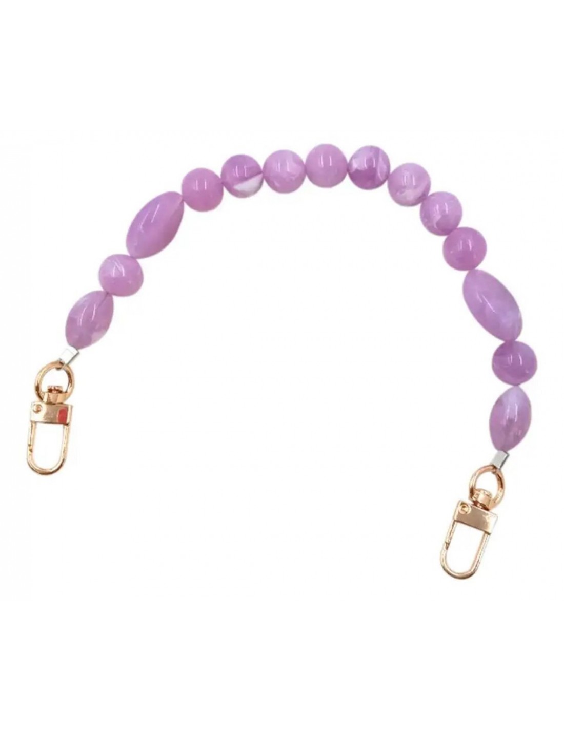Un toque de dulzura y color para tus accesorios El color lila es tendencia absoluta en complementos. Esta asa está diseñada para suavizar y alegrar cualquier bolso, aportando un aire fresco y primaveral. Sus piezas imitan la textura de piedras pulidas, ofreciendo un brillo sutil y muy elegante.