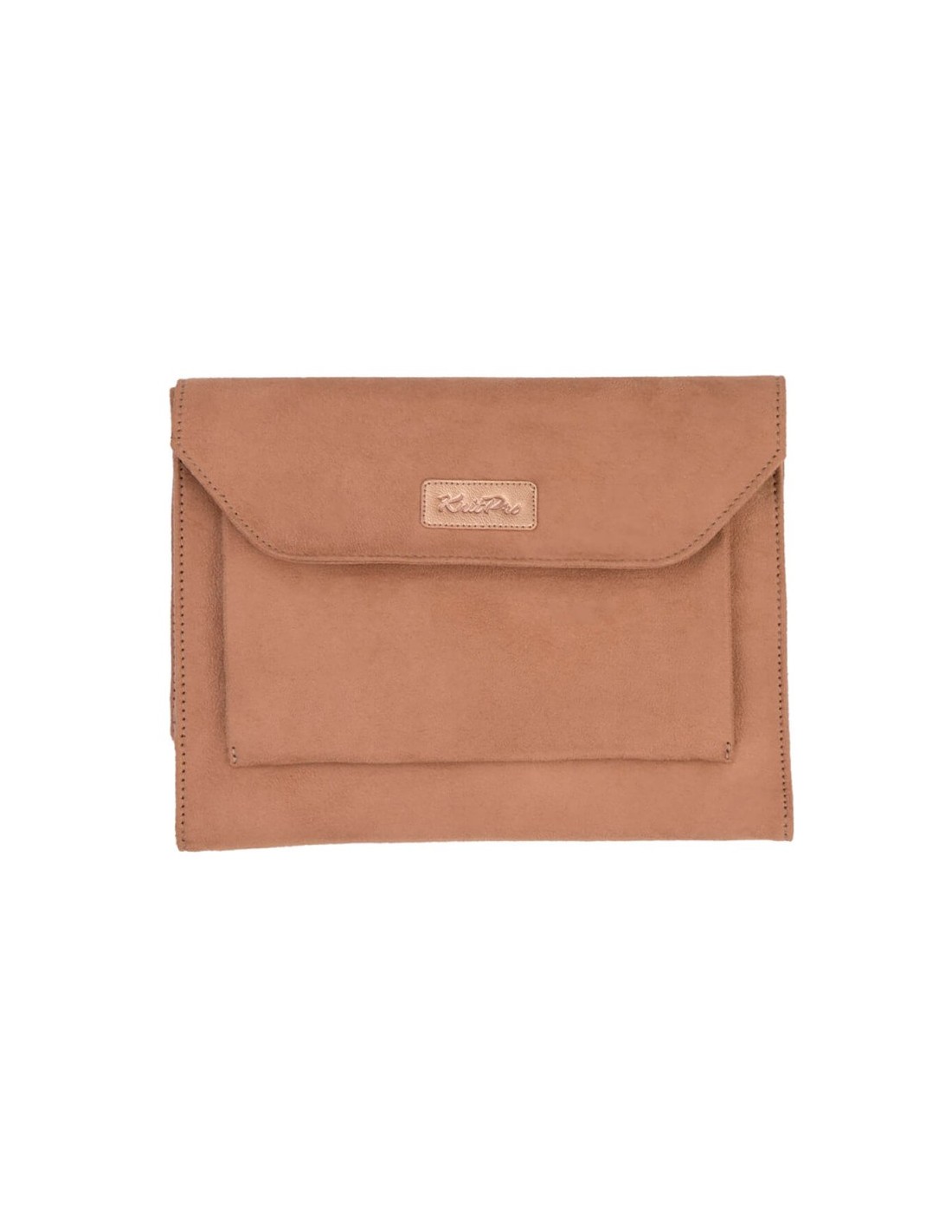Este estuche es el compañero perfecto para quienes quieren tener todas sus agujas circulares, de doble punta, ganchillos y accesorios siempre a mano. Confeccionado en suave antelina beige y con un diseño tipo cartera elegante y compacto, es ideal para llevar contigo a donde vayas.