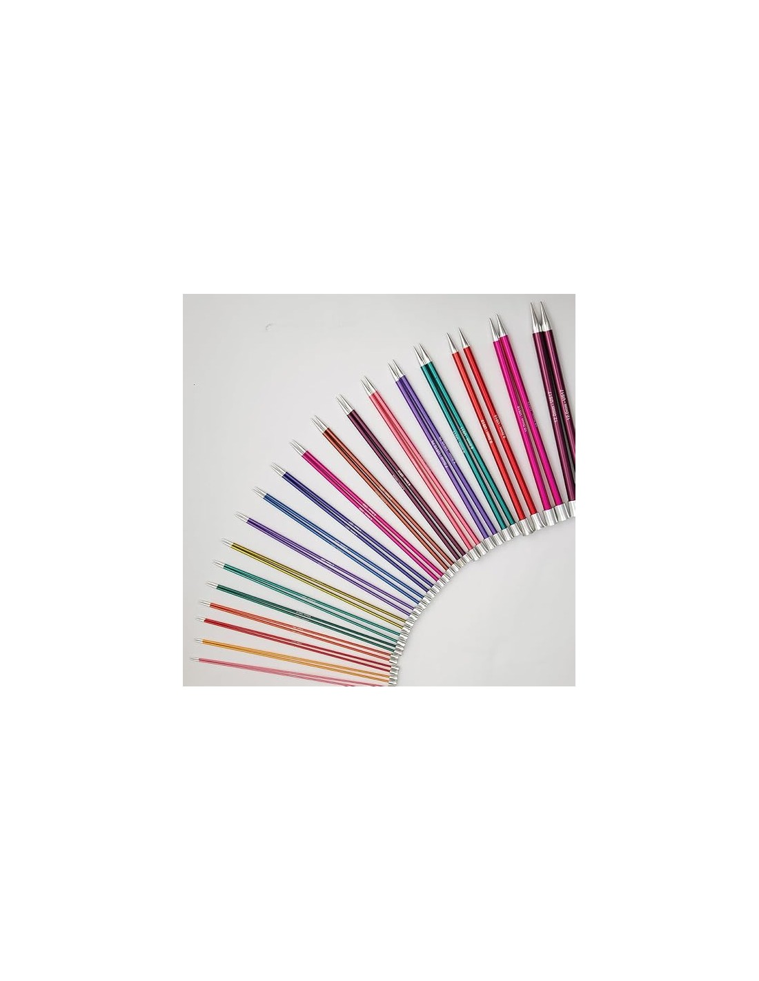 Agujas de punto KnitPro Zing, unas agujas de colores fabricadas en aluminio de excelente calidad. Perfectamente pulidas, con una capa de revestimiento que deslizará tus lanas e hilos perfectamente. Entre muchísimas características les queremos destacar algunas como el particular diseño fabricado en aluminio que las hace más resistentes todavía, con un perfecto deslizamiento de tus materiales sobre ellas, para trabajar cómoda y rápidamente. Su diseño ofrece cada grosor en un color distinto para identificarlas fácilmente.