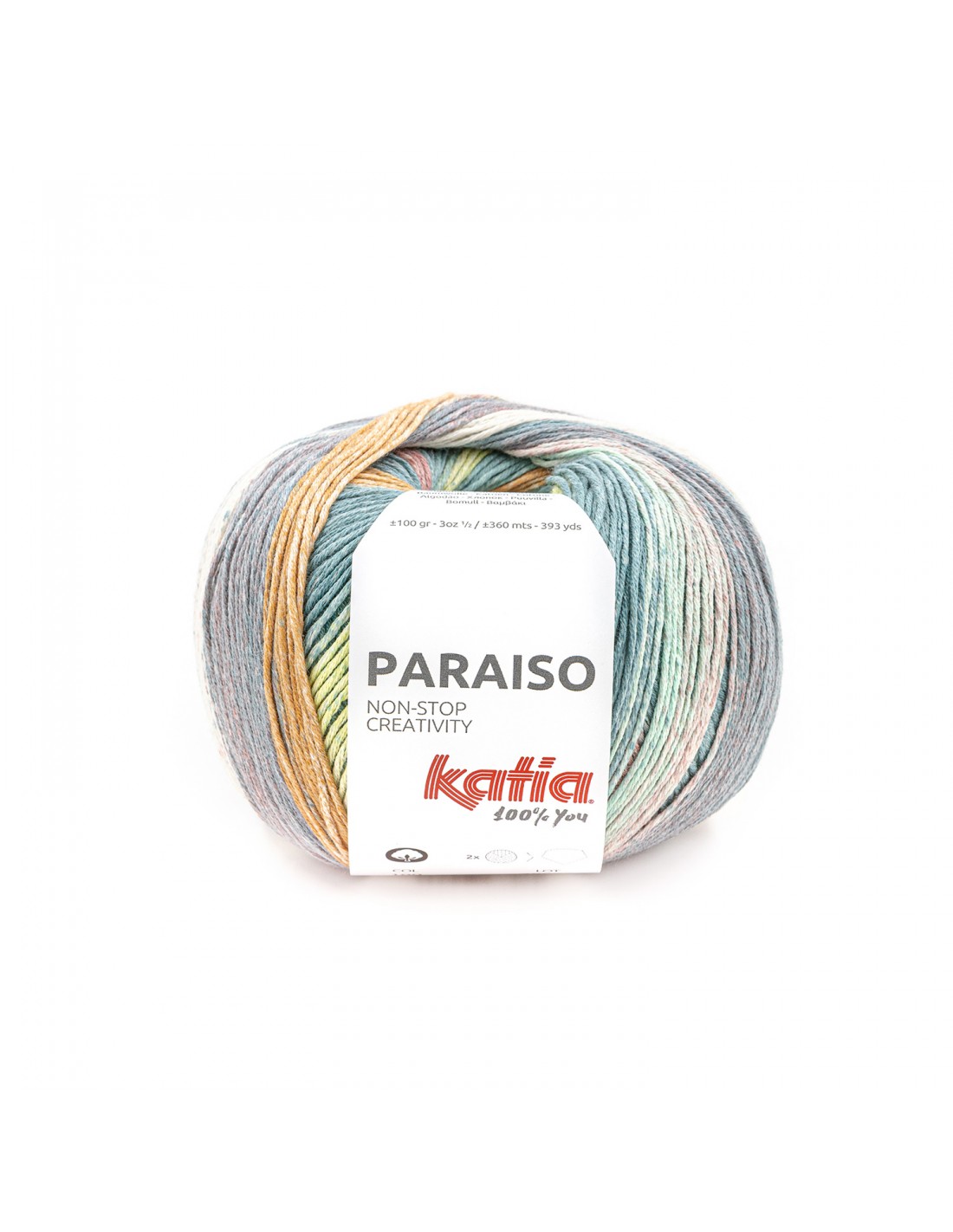 Presenta el mismo grosor que Katia Panamá, por lo que podrás combinar este hilo multicolor con este unicolor para conseguir efectos únicos. Al presentarse en ovillos de 100 gramos, podemos conseguir un pañuelo utilizando 1 solo ovillo, o un chal usando 2 unidades.