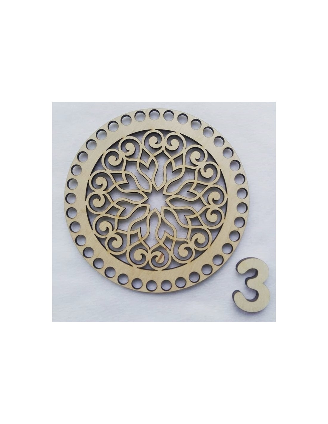Base de Madera Troquelada "Fantasía 3" (16cm) - Para Cestas y Crochet
