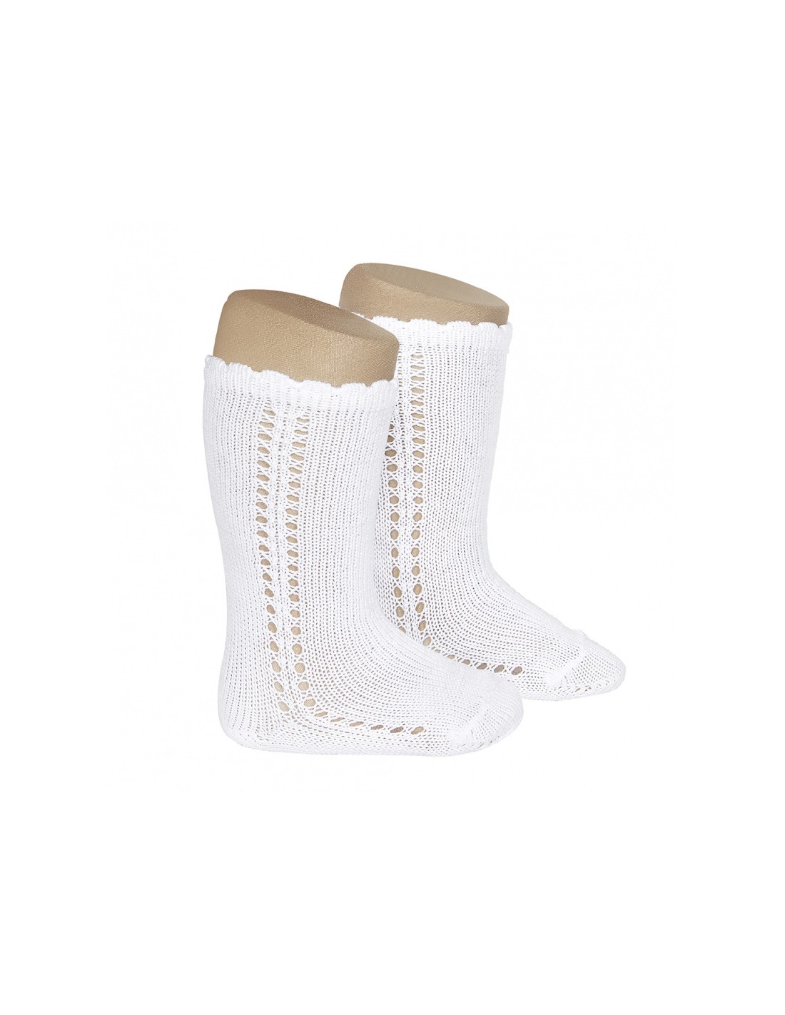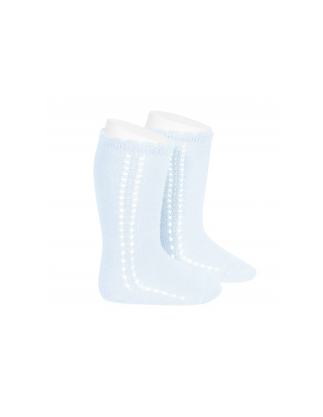 Calcetines altos por debajo de la rodilla 100% algodón perlé para primavera con detalle calado lateral. Disponible en tallas de 3-6 meses a 4 años.